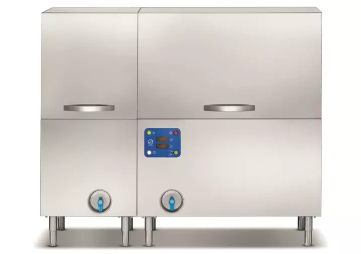 - As várias zonas de trabalho são controladas pelo auto-start e sistema económico de enxaguamento, que se ativa à medida que os cestos passam e desativa automaticamente ao terminar